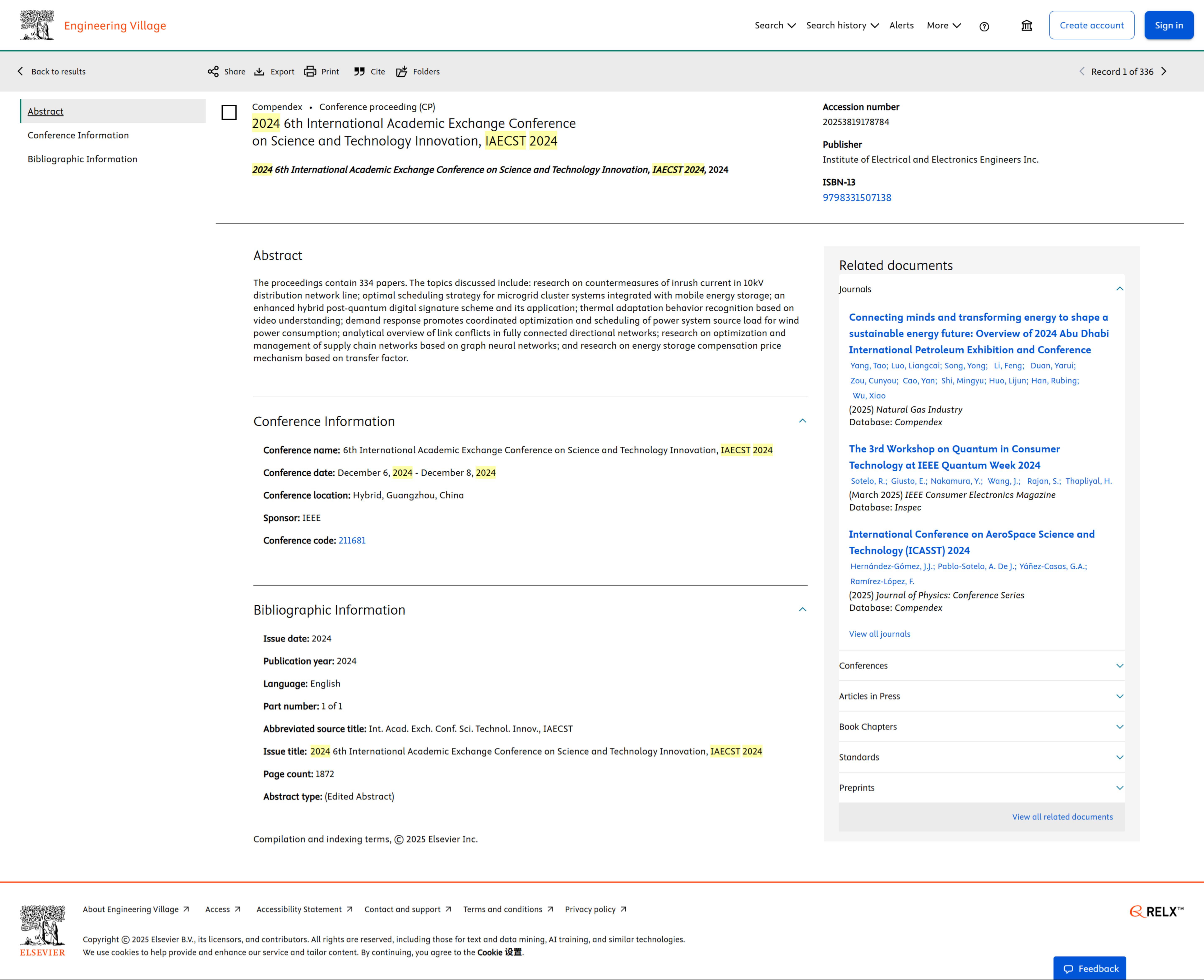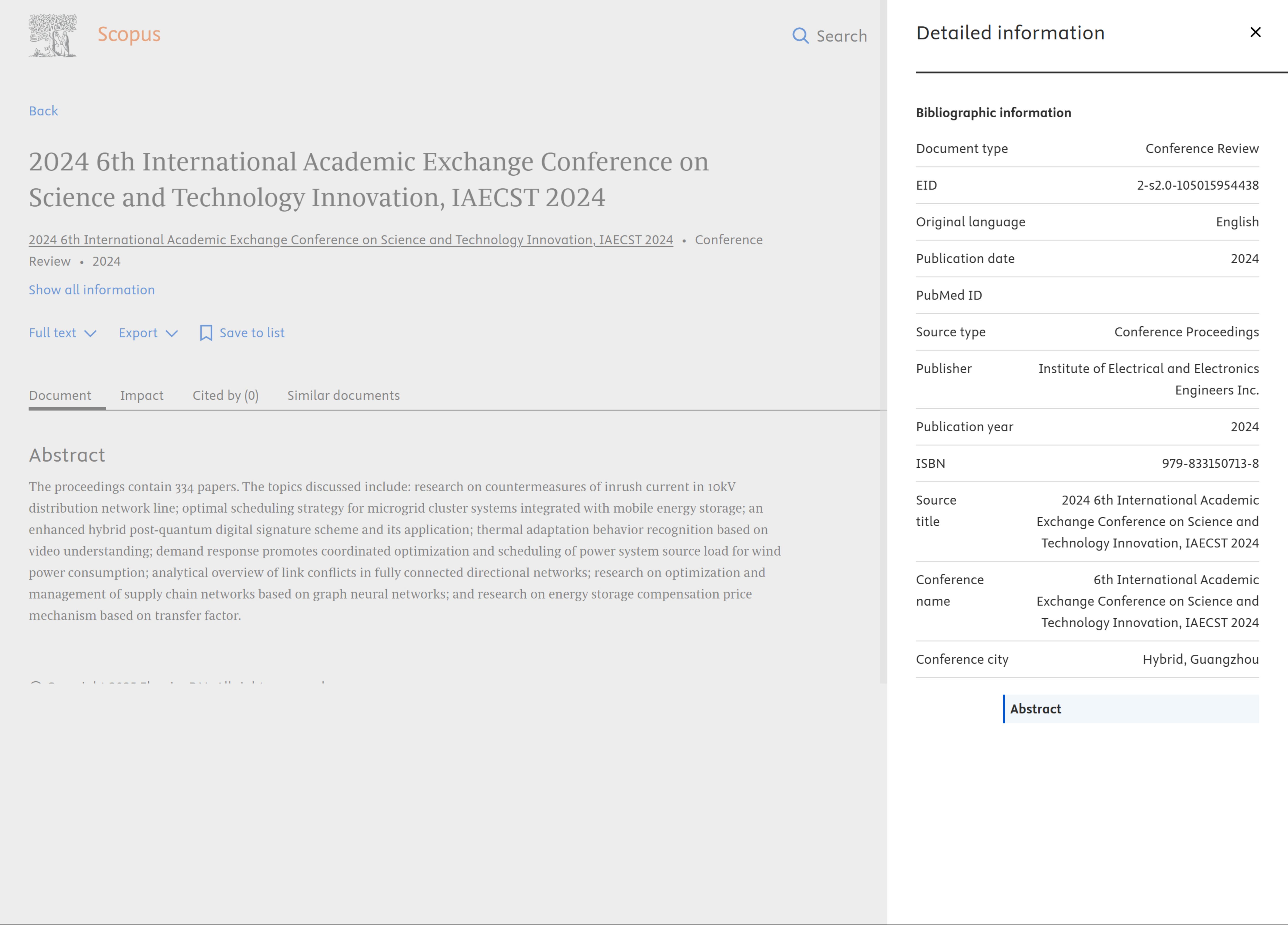 主会IAECST 2024 检索记录: EI Compendex丨SCOPUS