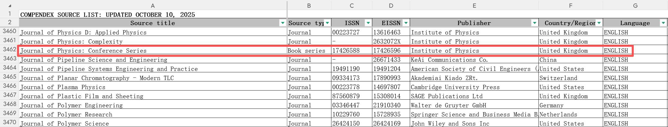 IOP-Journal of Physics: Conference Series 在EI 检索列表中!
