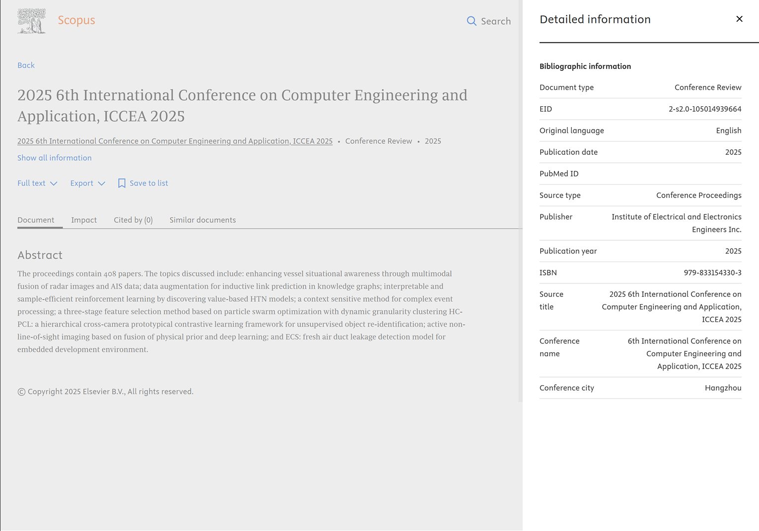 | ICCEA 2025 | ![]() | IEEE出版 (ISBN: 979-8-3315-4330-3) 会后4个月见刊,见刊后1个月检索 |