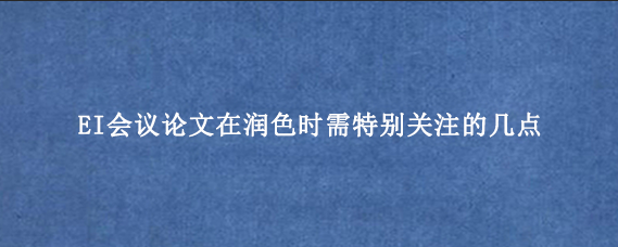 EI会议论文的正确书写格式