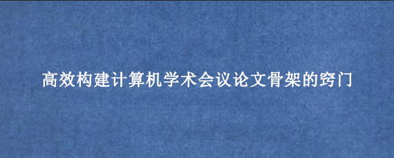 计算机学术会议论文的写作亮点如何提炼?