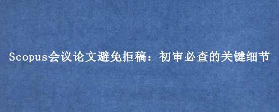 Scopus会议论文必做的几项细节检查事项