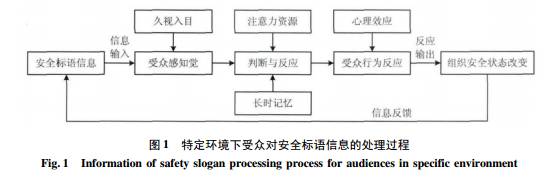 2. 2. 1 安全标语信息的传递原理在安全标语信息传递过程中,受众所处环境直接影响受众的情绪,同时,受众的心理紧张程度随着接受的视觉刺激的变化而变化。根据知觉心理学[13],从受众的视觉认知特征出发,分析特定环境下受众对安全标语信息的处理过程,如图 1 所示。